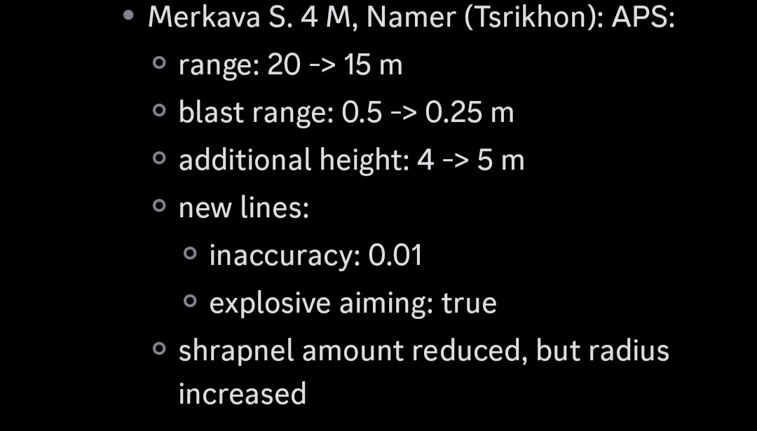 new update: datamine about changes on merkava aps
