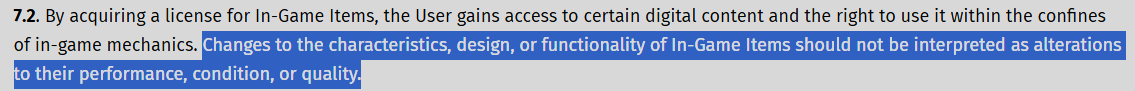 the community should be very vocal about this, just like the community did to wargaming when they nerfed a premium tank. They have the same clause in tos, but they never nerfed a premium tank again. To be honest, they do a decent job at balancing premium tanks when they release them. There are exceptions, ofc