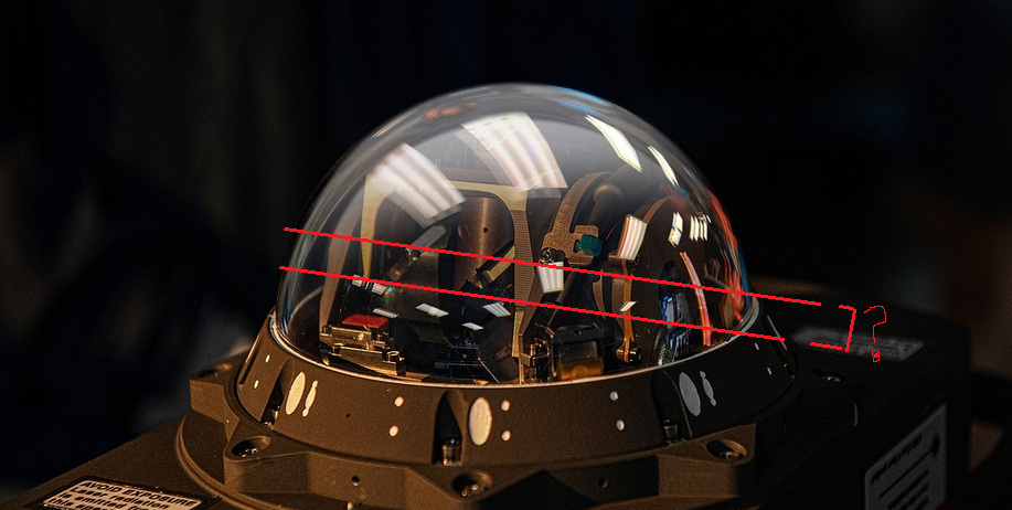 As you can see from these screenshots, the DIRCM dome is visible roughly from up to 30°~35° Elevation at 3 o’clock (starboard) side. On the port side it is more limited. I used the HIRRS surface to measure the vertical angle, since it is vertical and co-planar to the Camera PoV when faced from 3 o’clock. I also put a dark decal so it is a little bit easier to see the dome. We assume the Laser Emitter is located roughly in the geometric center of the dome, as seen in this picture: