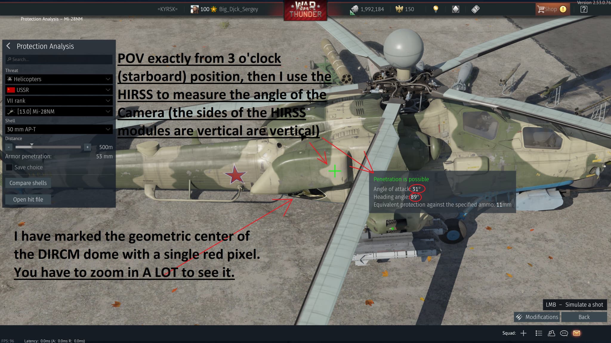 With the increasing number of players complaining about the coverage of the LDIRCM module on the Mi-28NM helicopter, I have done a geometric analysis on the maximum potential coverage of the DIRCM emitter, based on geometric constraints, for the starboard side.
