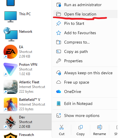 if you have the shortcut to the dev server on your Desktop, right click the shortcut and then click “Open file location”