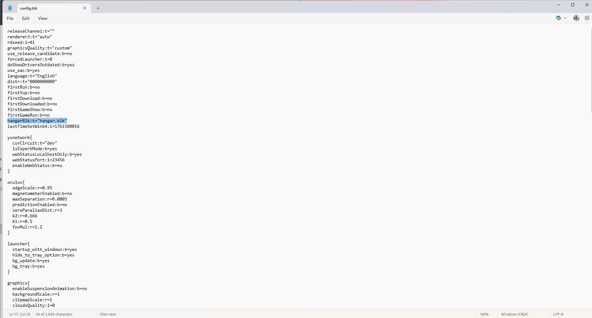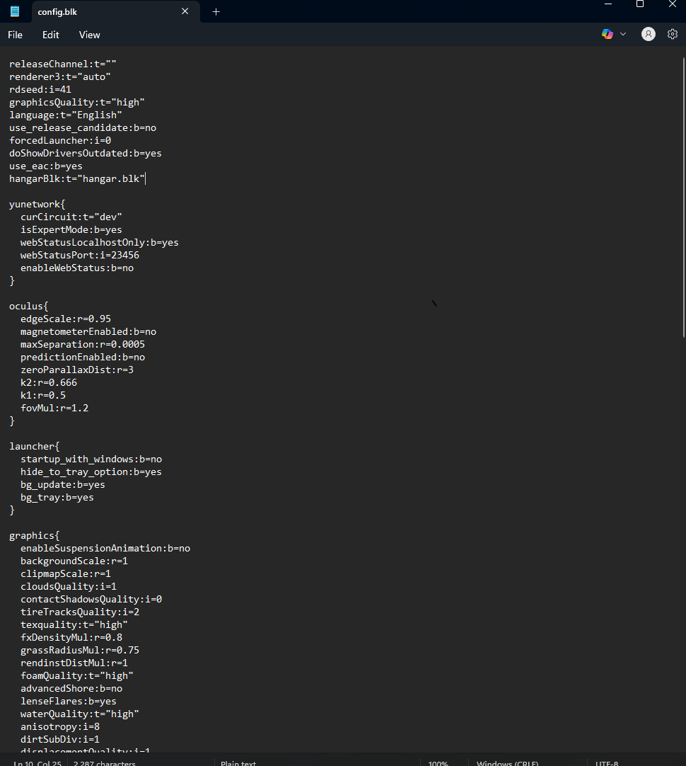 3. Edit the config.blk file to read the highlighted text in the TOP Category ENSURE YOU SAVE THE CONFIG FILE, IT DOES NOT SAVE AUTOMATICALLY