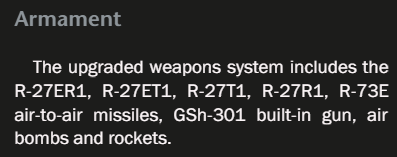 In the War Thunder, the MiG-29N/SD 9-12SD should be roughly the same as the three 12.7/13.0 BR MiG-29s in the German/Italian tech tree - except that it is capable of launching R-73s and R-77s, and cannot carry ground-guided weapons beyond Kh-29/KAB-500KR. Considering that the Su-27, which can carry 10 air-to-air missiles with this BR update (4/6 of which are the more capable R-27ER for long-range engagements and a similar level of radar and RWR), has also been moved to 13.0, I don’t think it’s out of the question that the MiG-29N/SD 9-12SD could be moved to 13.0.