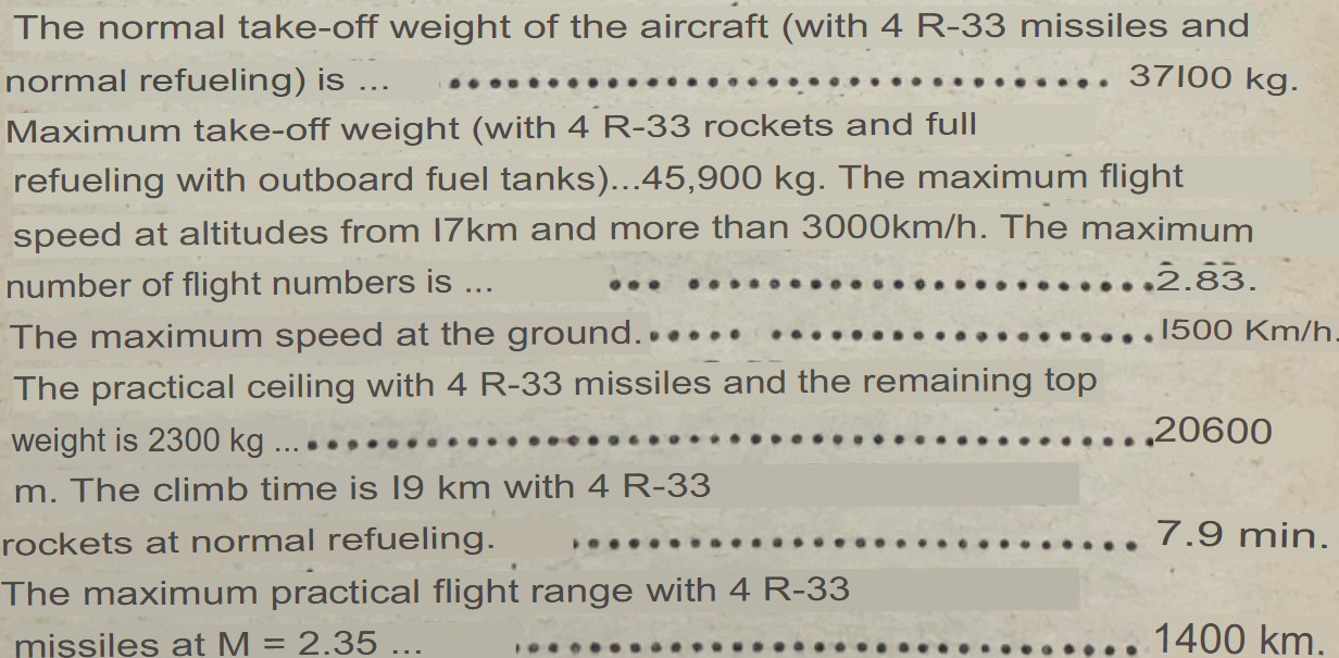 The only thing mig-31 really improves on vs the mig-25 is top speed on the deck (1500 vs 1200 kph)