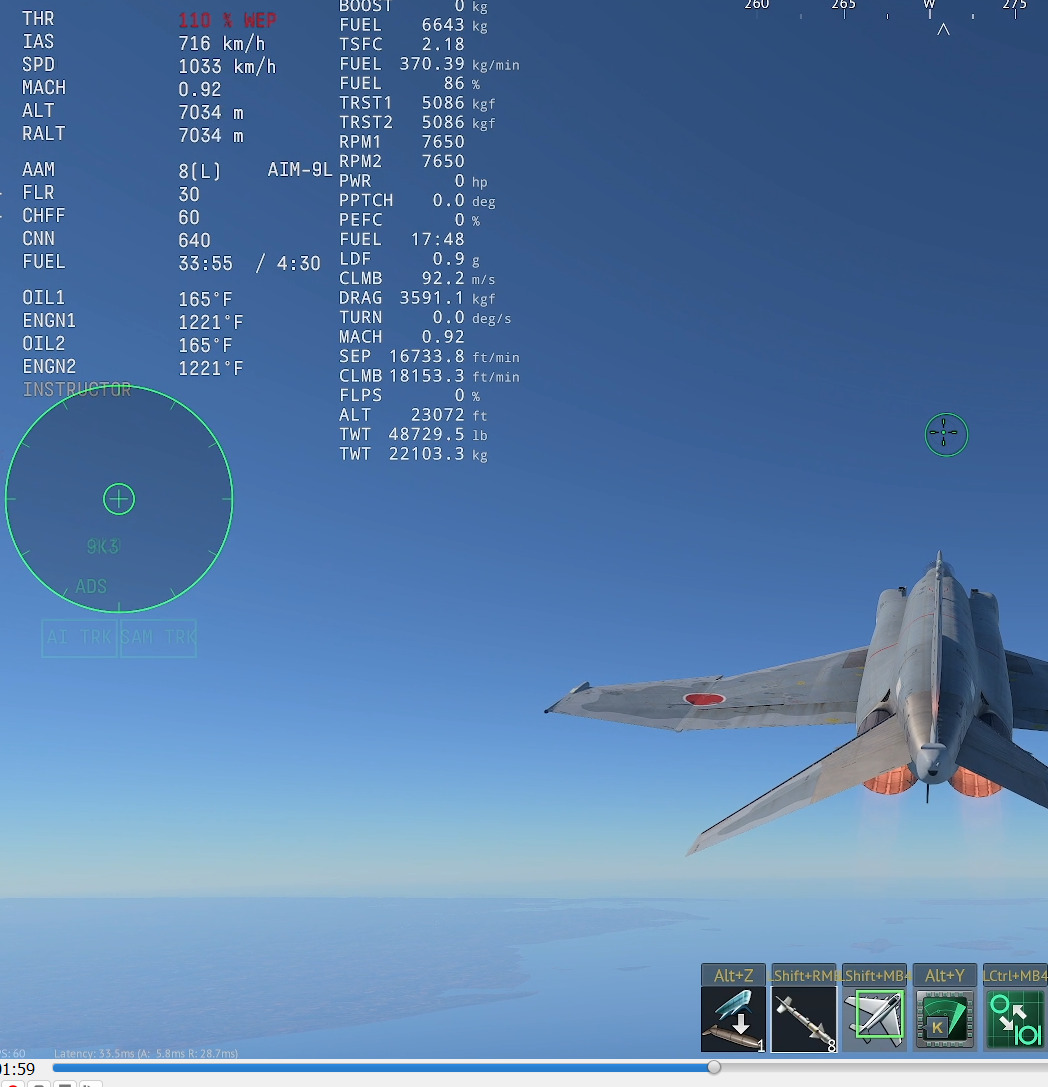 There are faster ways to make these aircraft climb, but I included 7000 meters because that’s a typical altitude people will level off before accelerating into mach in-match.