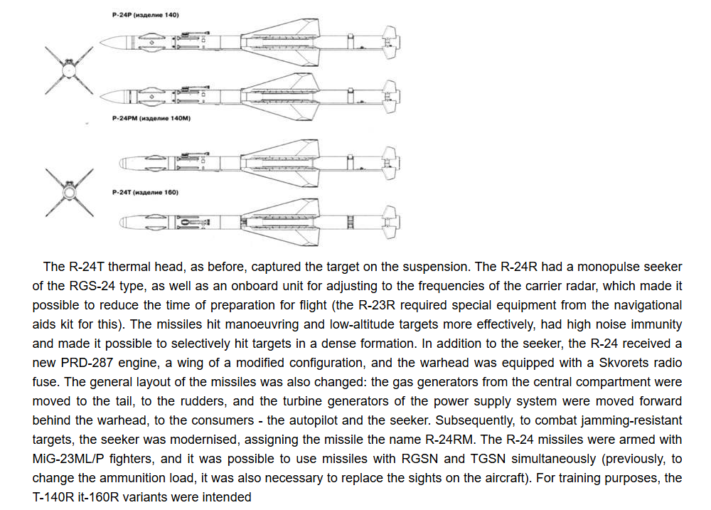 This is again simply false. R-24RM was just different electronics. I know there is a thread on here which says otherwise but it is wrong. R-24RM is just different seekerhead against helicopters, nothing more