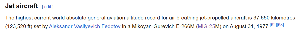mig23 can fly at 40,000m ? isnt the mig25’s world record 37,000m ?