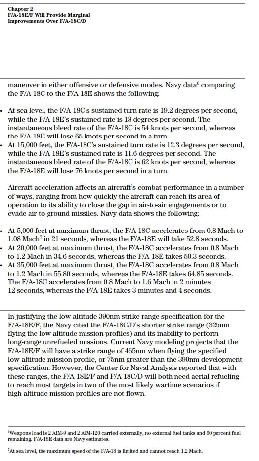 the Superhornet is known to perform worse in several metrics to the legacy hornet