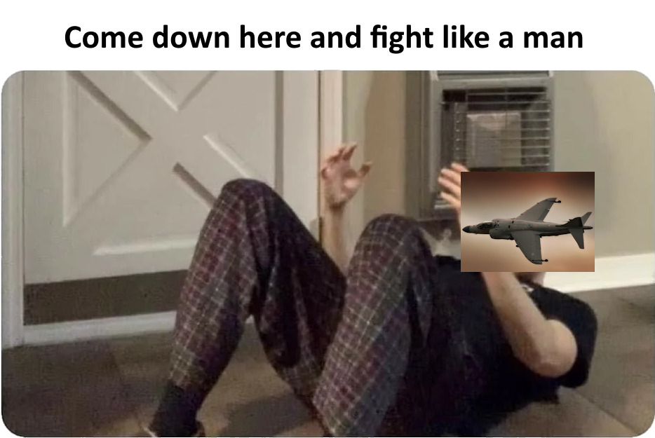 A harrier also has no energy and is a total sitting duck to any TVC IR missile or guns, aiming the nose on it is not as easy IRL as it is in-game.