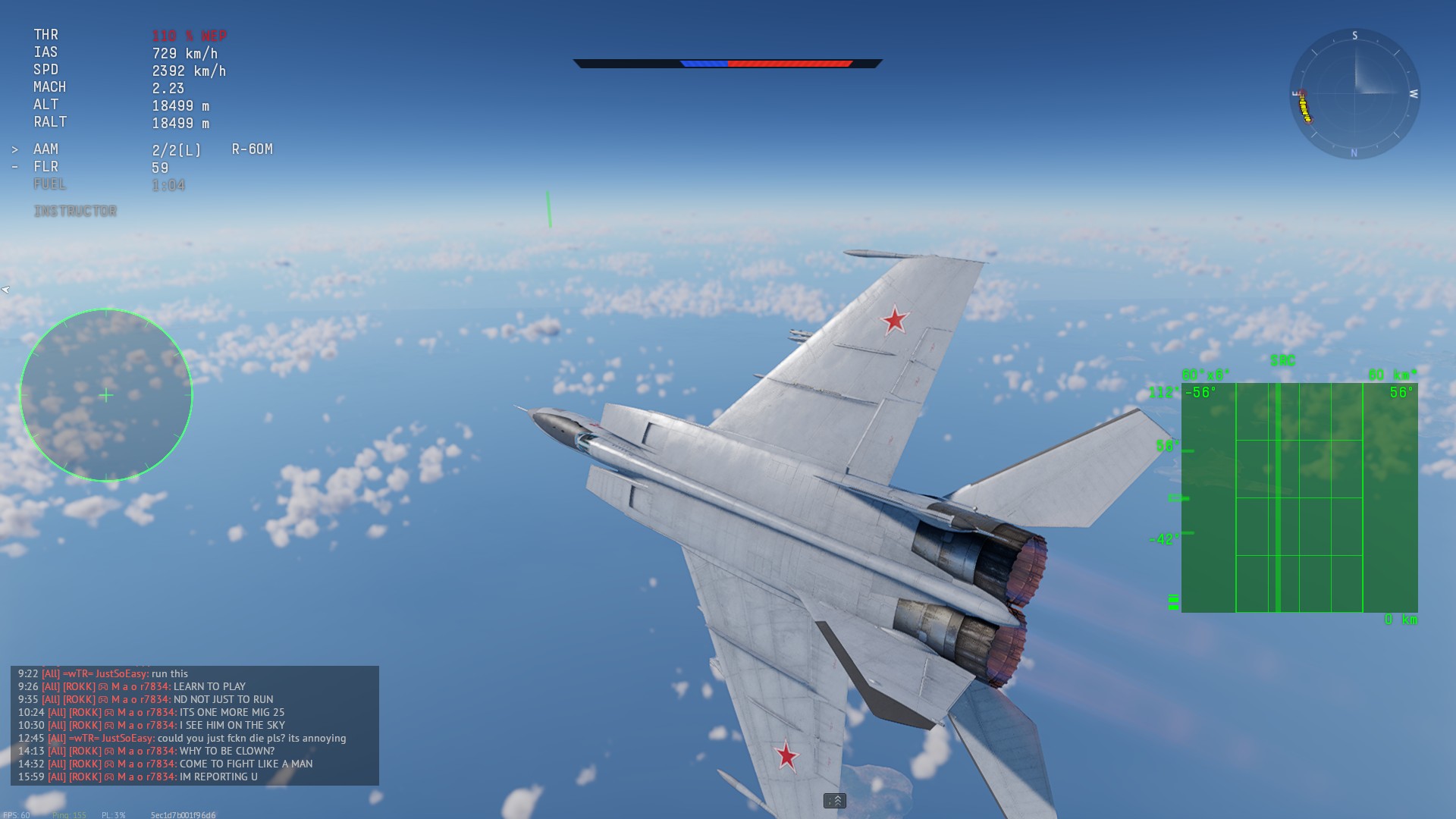 the speed at which the mig25 spawn, should largely be increased, all other spawn at like 1000-1200 kph while mig25 spawn at 600-700 kph
