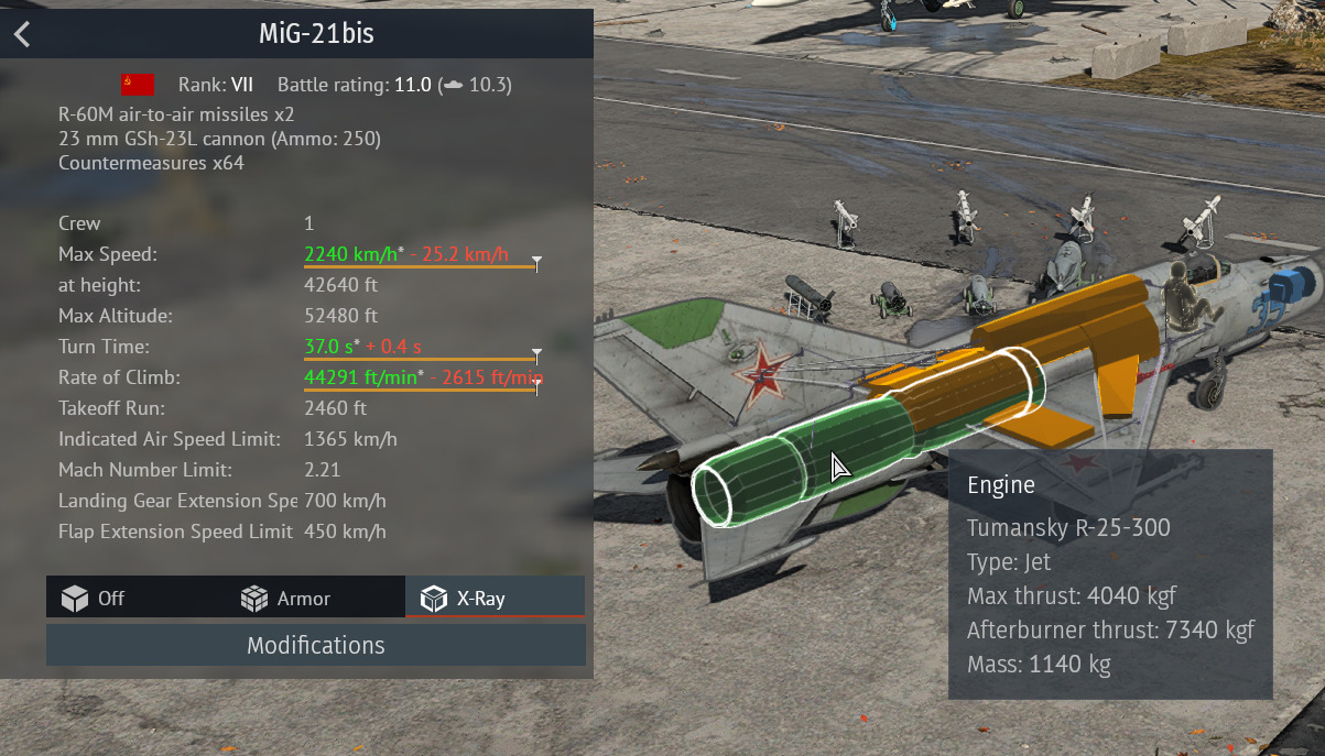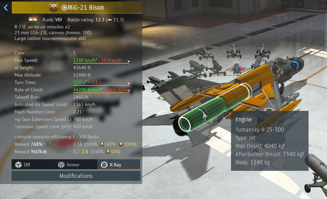 The thrust-to-Weight Ratio (TWR) of the War Thunder MiG-29 product index 9.12G: