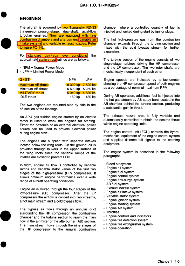 This is not difficult & requires minimal reading comprehension. You do not need a degree to comprehend this stuff. Again, here is the textbook definition of what Static thrust @ sea, standard day means & how its specifically listed in the MiG-29G manual.
