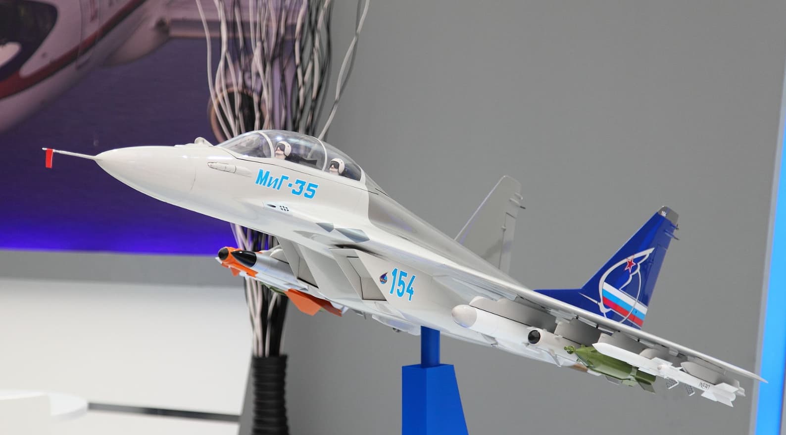 small model showing the two extra hardpoints planned for the MiG-35 bringing it up to 11 total, the idea never made it past model mock ups and advertising