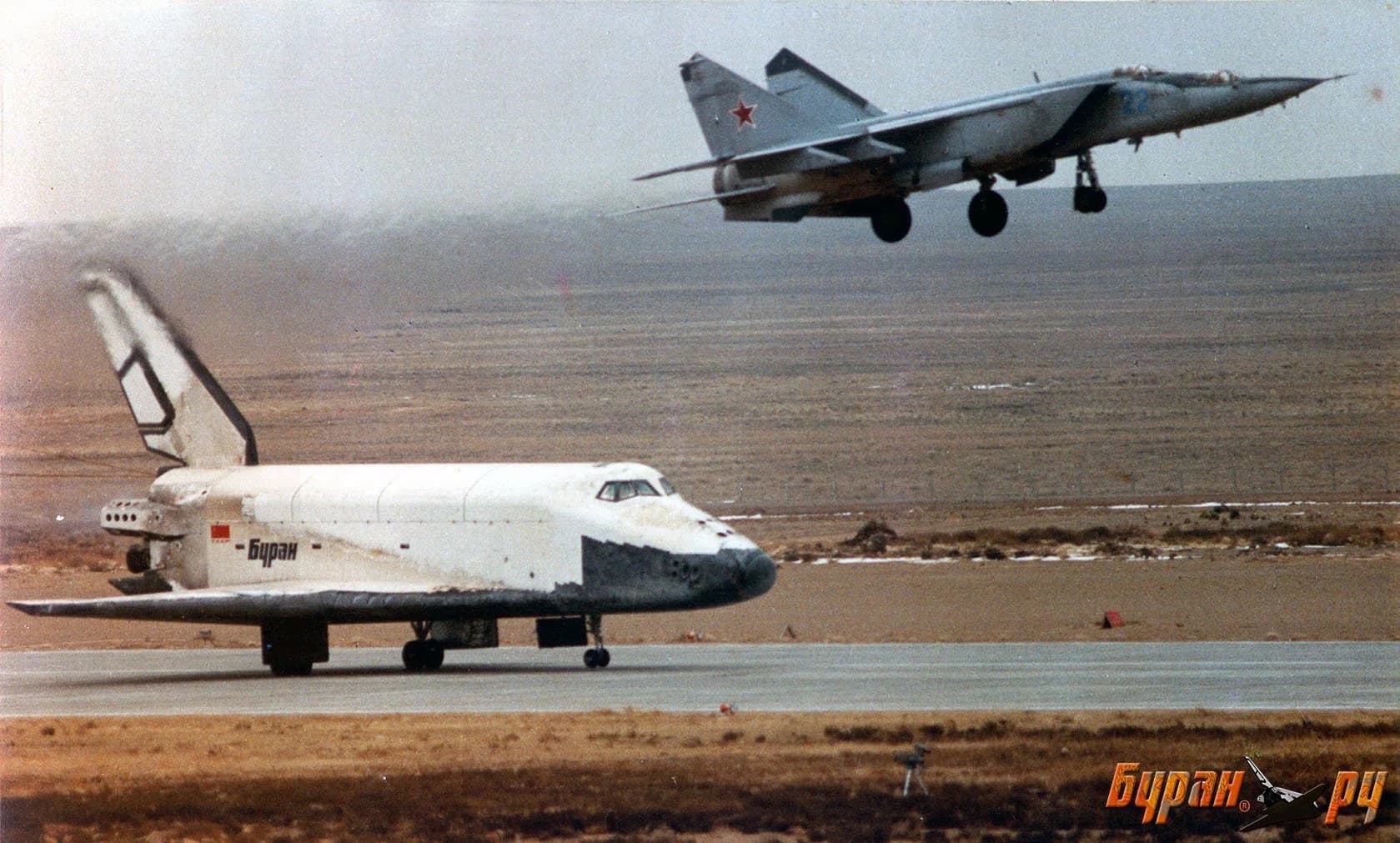 Both interceptor and bomber MiG-25s were used by the Buran program as testbeds. The MiG-25 was the closest thing to a spaceplane available at the time!