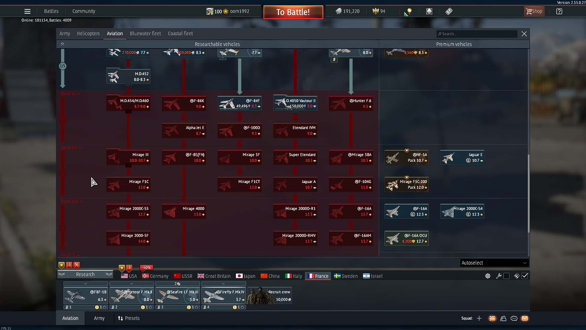 Gaijin never add another french Mirage 2000C to researchable tree before Mirage 2000C-S5 to rank VII (11.3 ~ 12.0) and rank VIII (12.3)