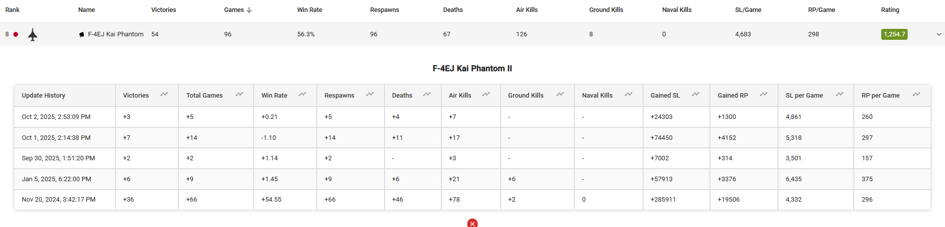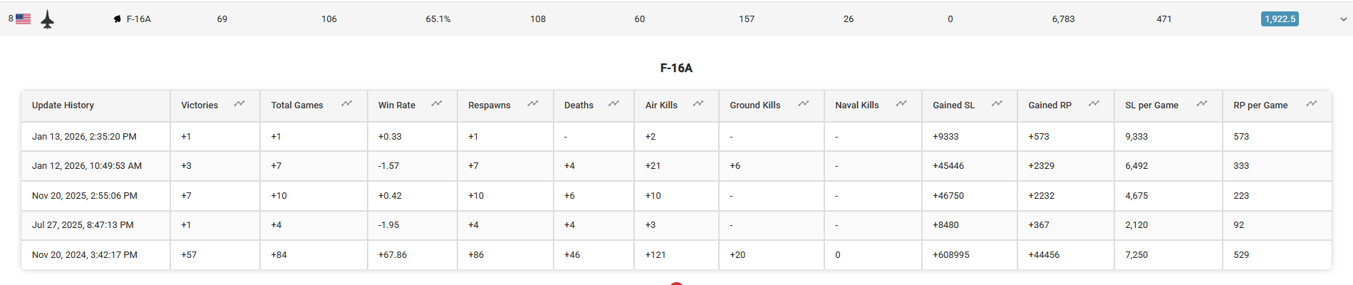 since early 2025: 36kills for 14 deaths, that’s 2.57 KD for F-16A Blk 10