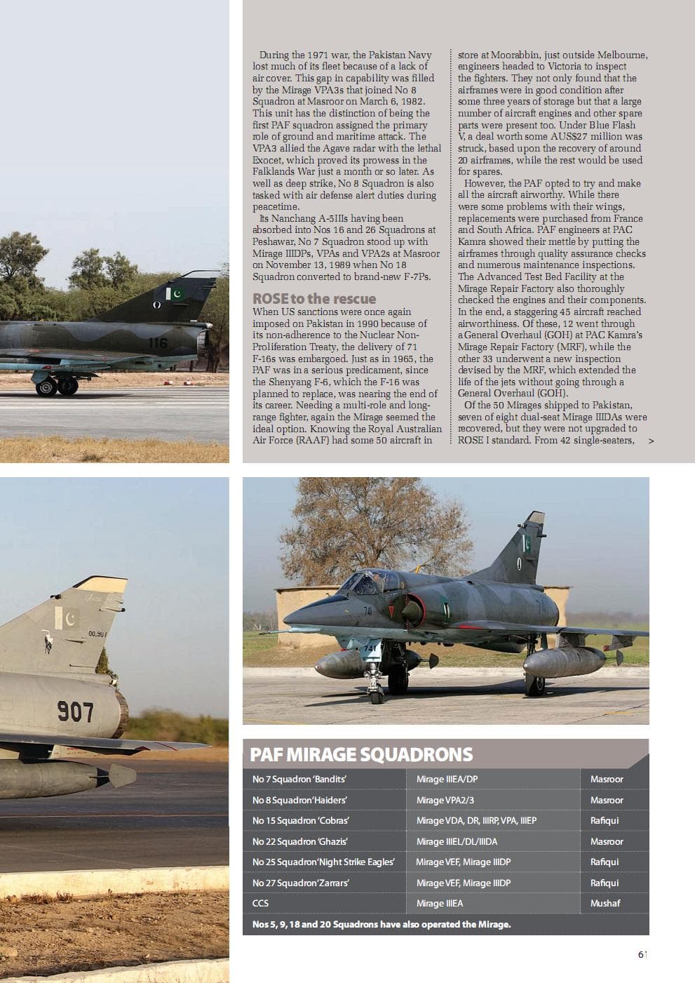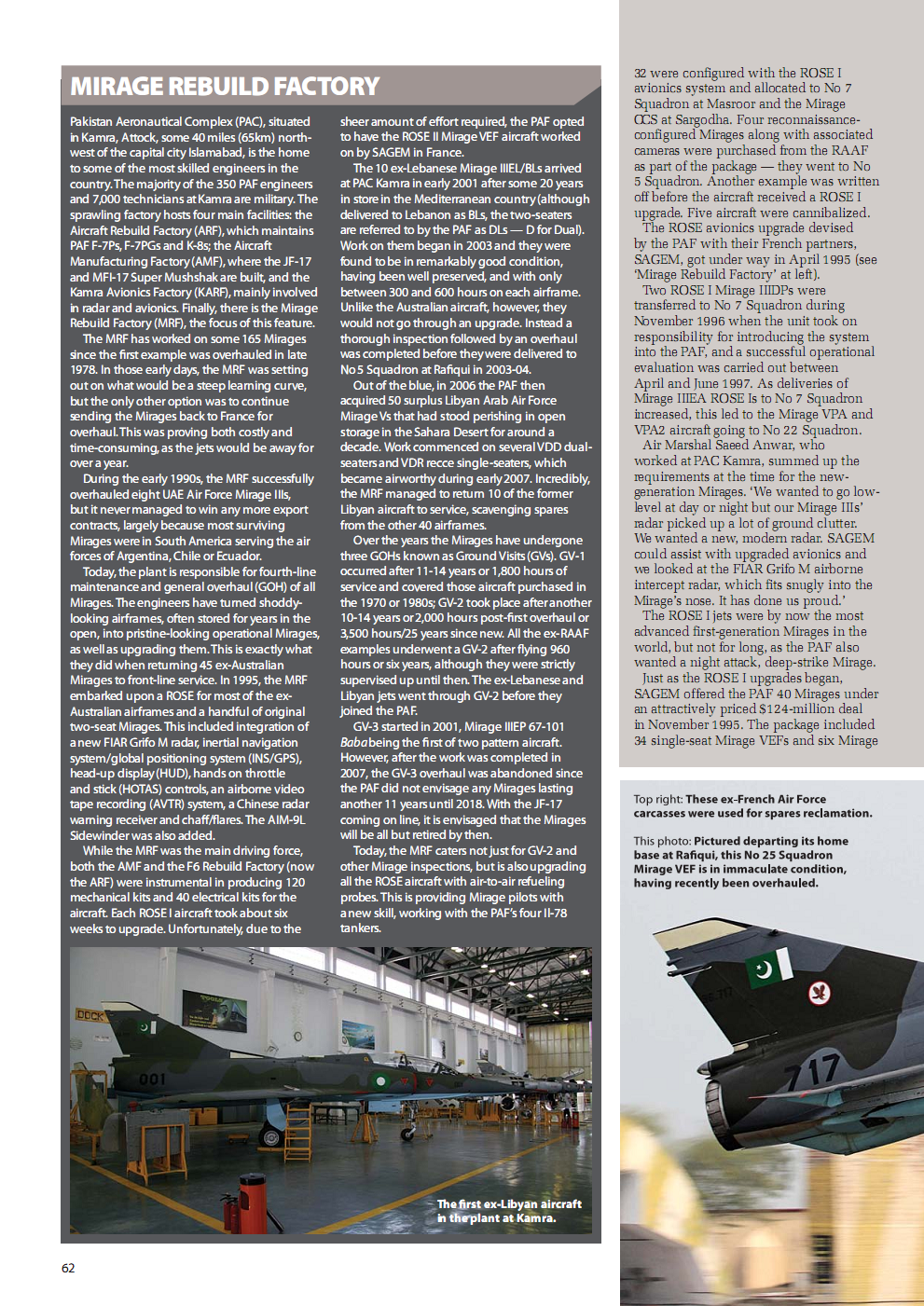 Most of the aircraft were upgraded at Pakistan Aeronautical Complex at Kamra while some were sent over to France with Dassault and SAGEM. The airframes were even paraded around in various airshows with the french companies demonstrating the various upgrades to other international customers. The first ROSE III aircraft was even displayed at Paris Air Show 2005.