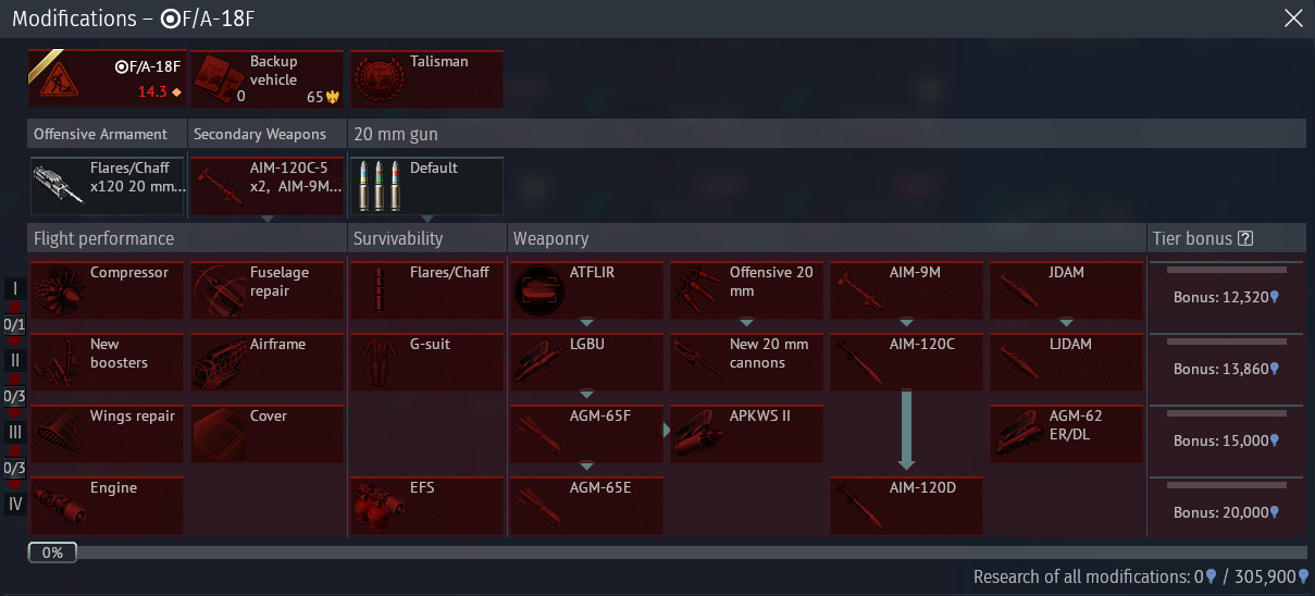 seen below are the modification trees for some of these planes