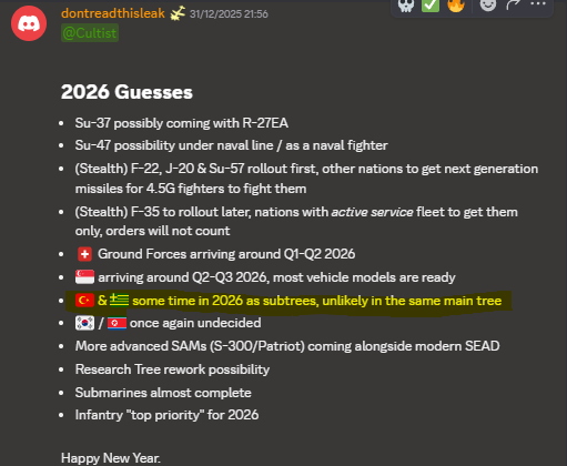 KAAN is still far out being planned for the 2030s, and only if Indonesia actually sticks to the plan of buying it until then. At that point it will also likely have been in the “guessed” Turkey subtree while the game has moved to 6th gen top tier. Once it’s added it’s nice variety to