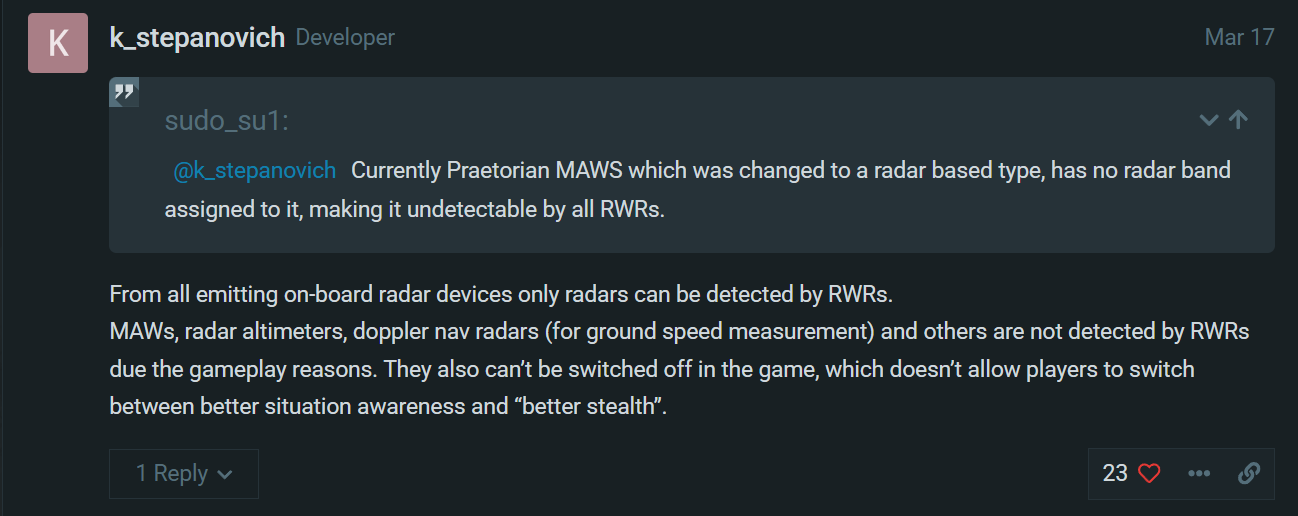 Would be interesting if the report is accepted since it is said to be a developers’ decision to not allow RWR to pick up any other signals besides fire-control radars.