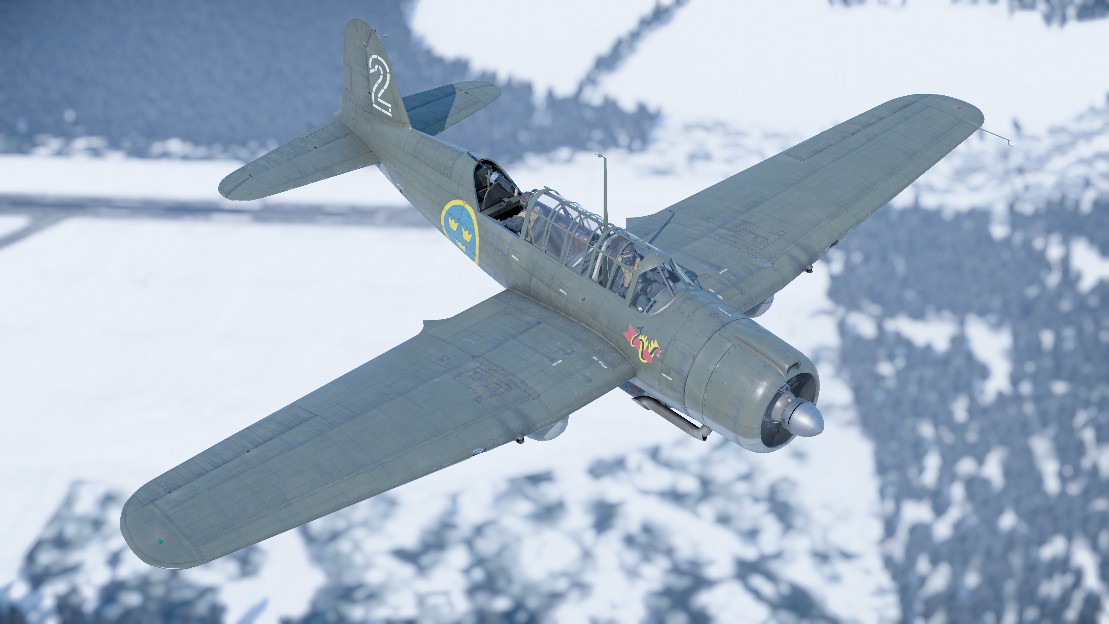 Das Abzeichen der Första divisionen, F 4 Frösön (1. Division des Jämtland-Geschwader), Schwedische Luftwaffe. Im Jahr 1944 tauschte die 1. Division ihr bisheriges Pinguin-Abzeichen gegen ein neues aus, das „Storsjöodjuret” (das Monster der Großen Seen) darstellt. Ähnlich wie das bekanntere Monster von Loch Ness soll dieses Fabelwesen im See Storsjön in Jämtland leben. Es wurde erstmals 1635 in einer Geschichte erwähnt, in der ein Runenmeister das Wesen in den Tiefen des Sees einsperrte, obwohl seine Entstehungsgeschichte seit dieser ersten Erzählung mehrfach adaptiert wurde. Ähnlich wie bei Nessie behaupten Besucher des Sees noch immer, das Wesen gesichtet zu haben, obwohl die Beweise dafür erwartungsgemäß zweifelhaft sind. Das Symbol des Storsjöodjuret, das sich um eine rote Bombe windet, war am häufigsten auf den leichten Bombern vom Typ B-17A der Division zu sehen, wo es auf beiden Seiten unterhalb der Vorderseite des Cockpits vor dem Motor aufgemalt war.
