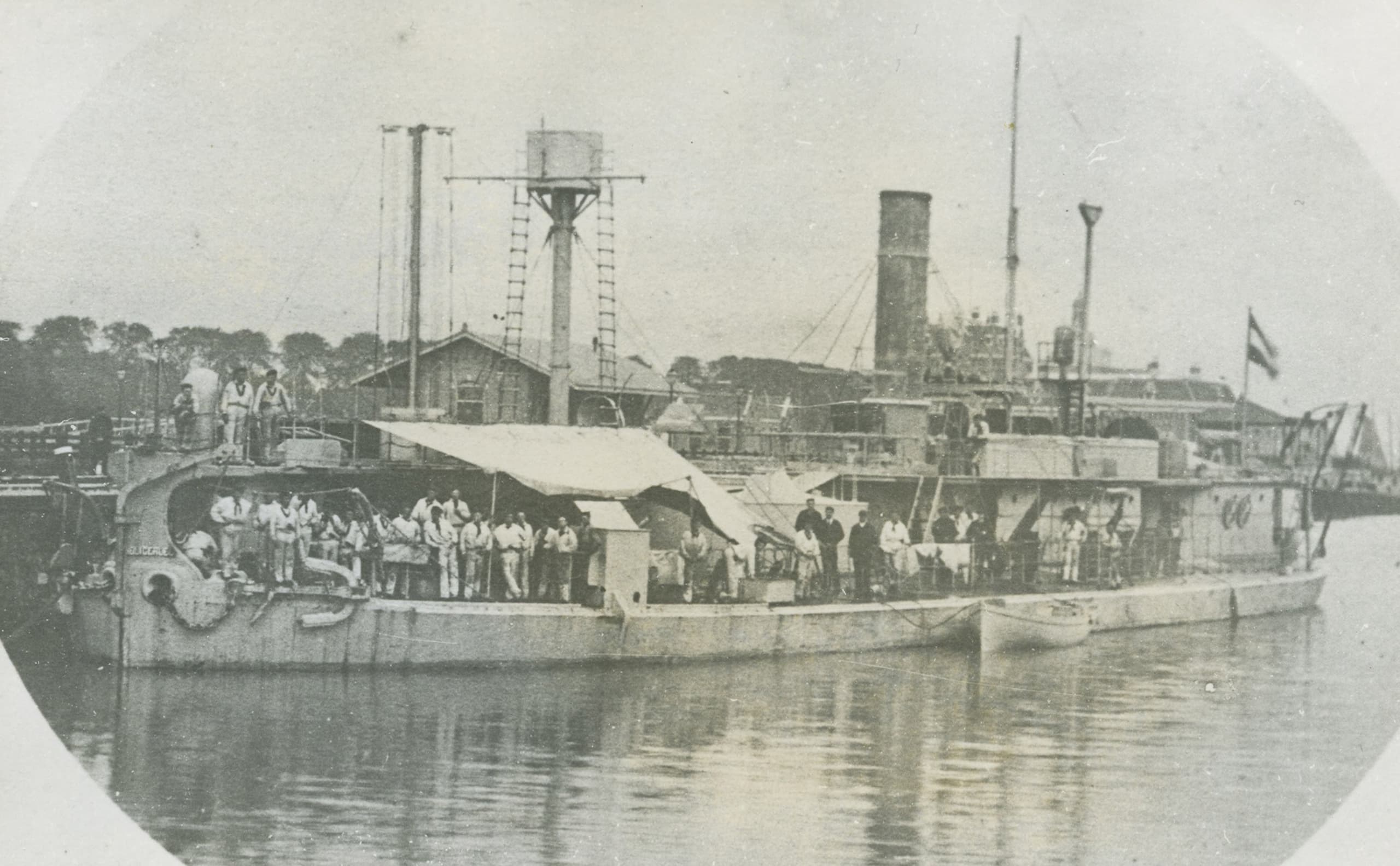 HNLMS Heiligerlee in her 1886 refit. Note the 37mm Hotchkiss gun in the front crows nest
