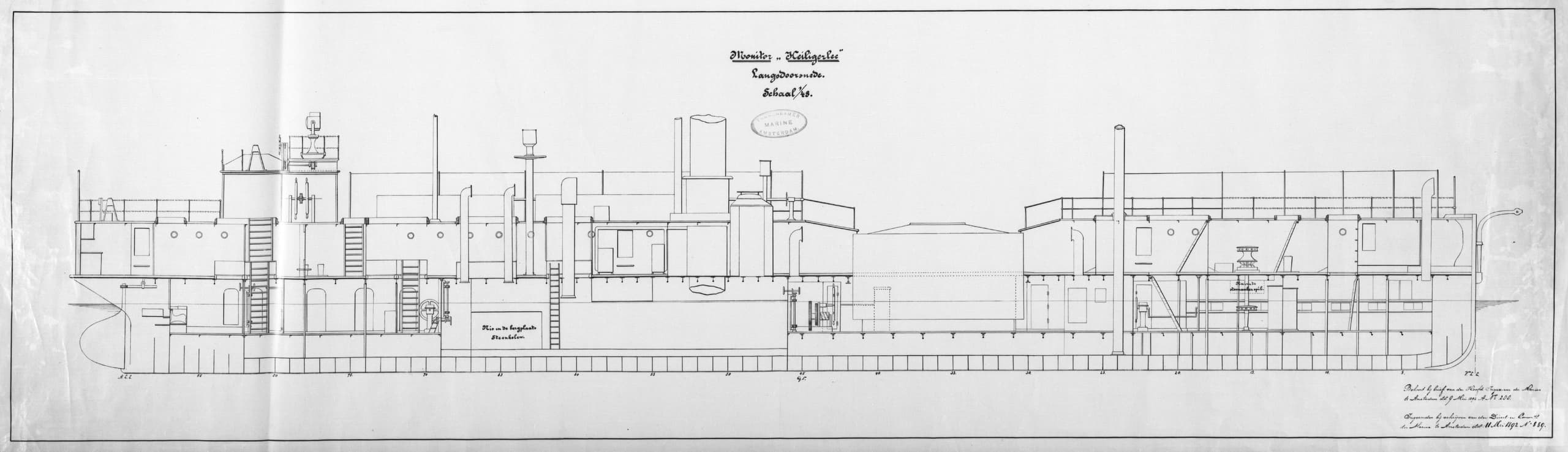 A blueprint of HNLMS Heiligerlee after her 1884 refit