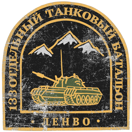 An emblem of the 133rd Separate Guards Tank Battalion, Russian Federation. The group can trace its origins back to 1943, beginning as the 482nd Separate Tank Battalion. It would be renamed and restructured numerous times through the Second World War and beyond, when it would be attached to several different regiments and divisions. This emblem specifically was created following the battalion’s participation in the Chechen War, where it fielded T-80BV tanks along with several BMP models and 2S1 self-propelled howitzers. The mountains in the badge represent the Caucasus Mountains where the battalion fought. The reason for the tank in the badge being a T-55 and not something more contemporary like the T-80 is unclear. It may have been a way to honor the previous generation of tankers or could have simply been an artistic choice. The text at the bottom reads “ЛЕНВО” (LenVO), short for Leningrad Military District, where the battalion was stationed. Officially, the emblem was only used as a badge or patch, with limited evidence to suggest it was regularly painted on the battalion’s vehicles.