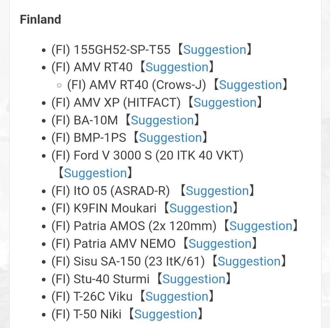 If Finland gets new vehicles, it should be original mods or vehicles like several if the suggestions below (Though not all Finnish ground has to offer)