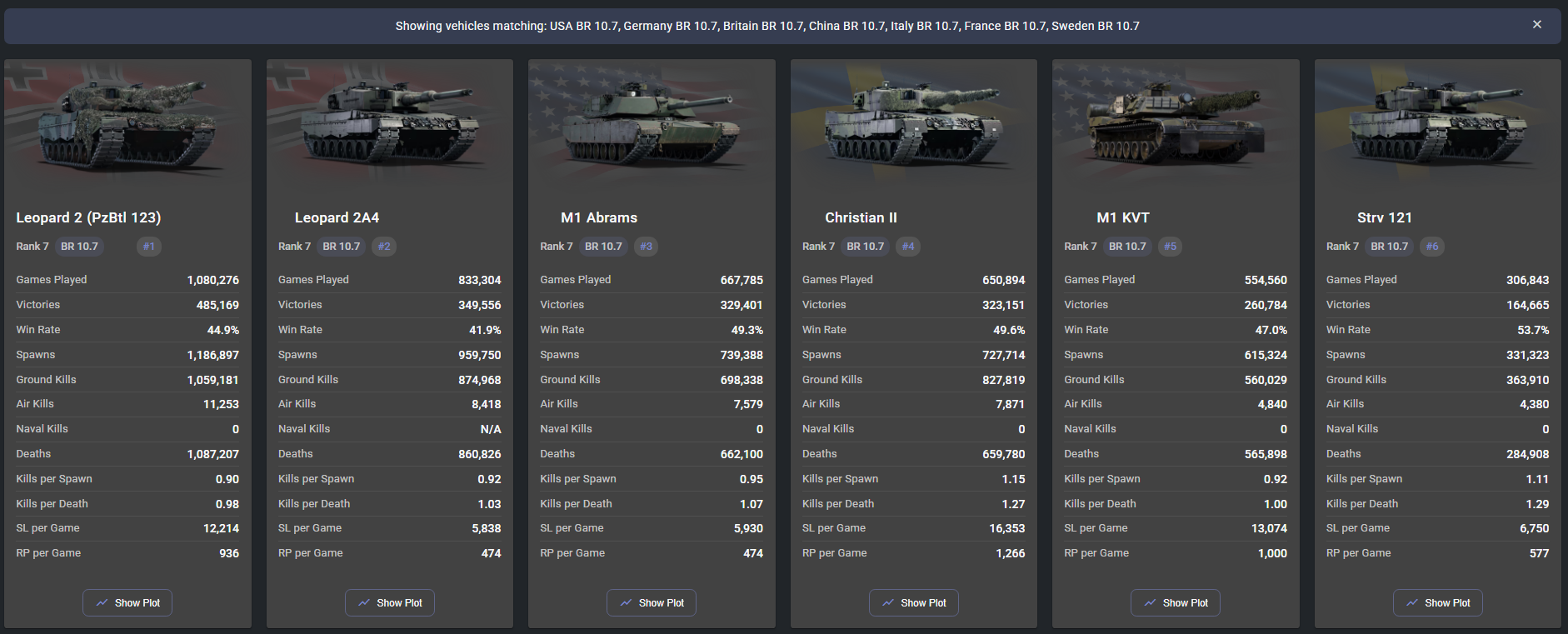 These are the top 6 most played tanks at 10.7 if you don’t include USSR.