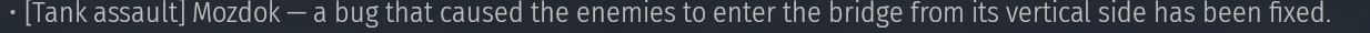 Dear devs, what you have done is not a fix at all. You moved the entire spawn so that bot tanks completely pass by the bridge on the east side, now they’re driving up several rocks instead. Please either roll it back to the previous state (it didn’t happen all that often) or make sure that vertical driving is disabled on the whole.