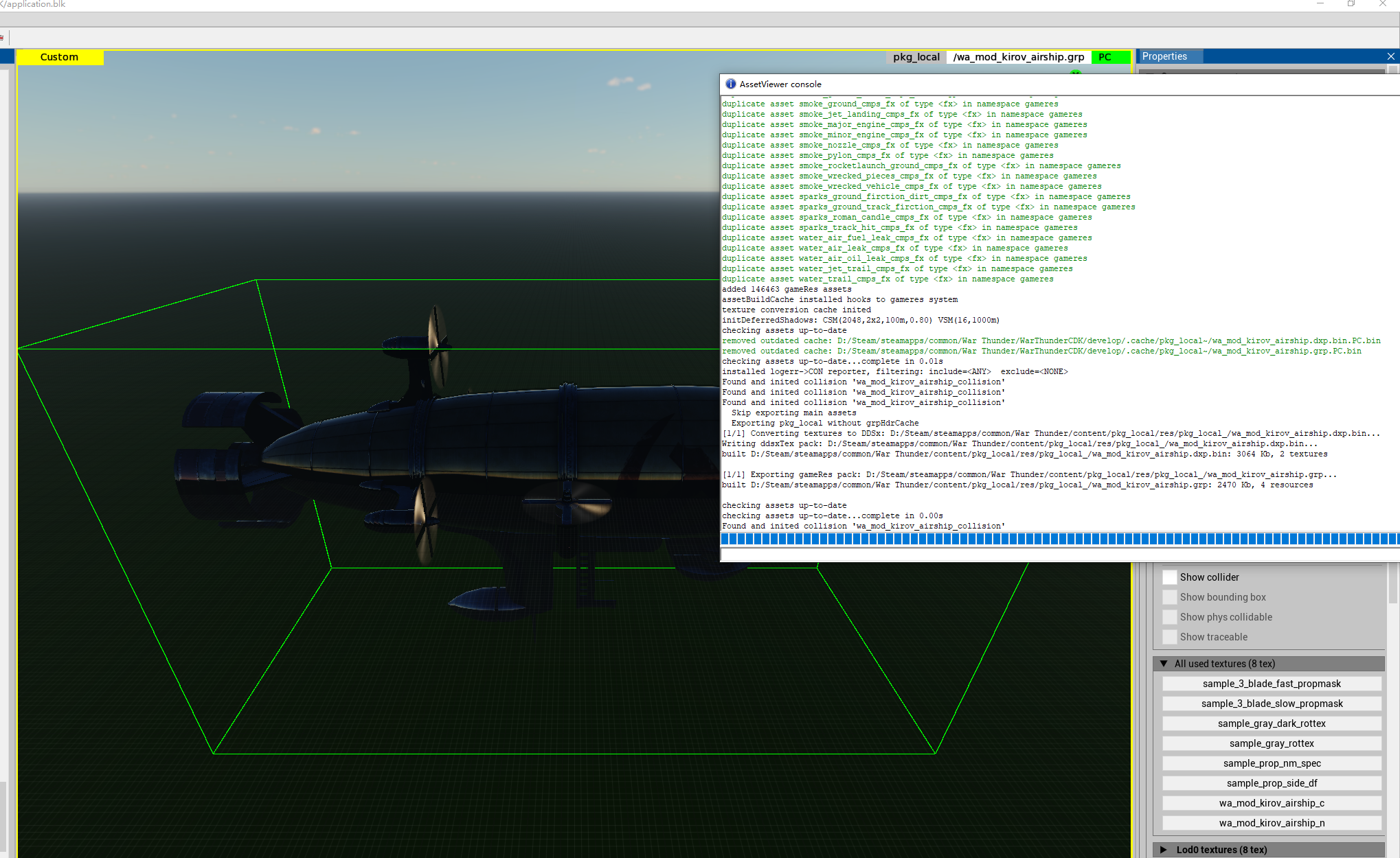 I attempted to create a model of a Kirov airship. The model is now basically complete. I tried to open it in the game, but there was a problem: it is transparent in the game! It can fire ammunition and fly normally. Pressing the “o” key allows you to view the “_dm” model. There were no errors when exporting using “WTAssetViewer”.