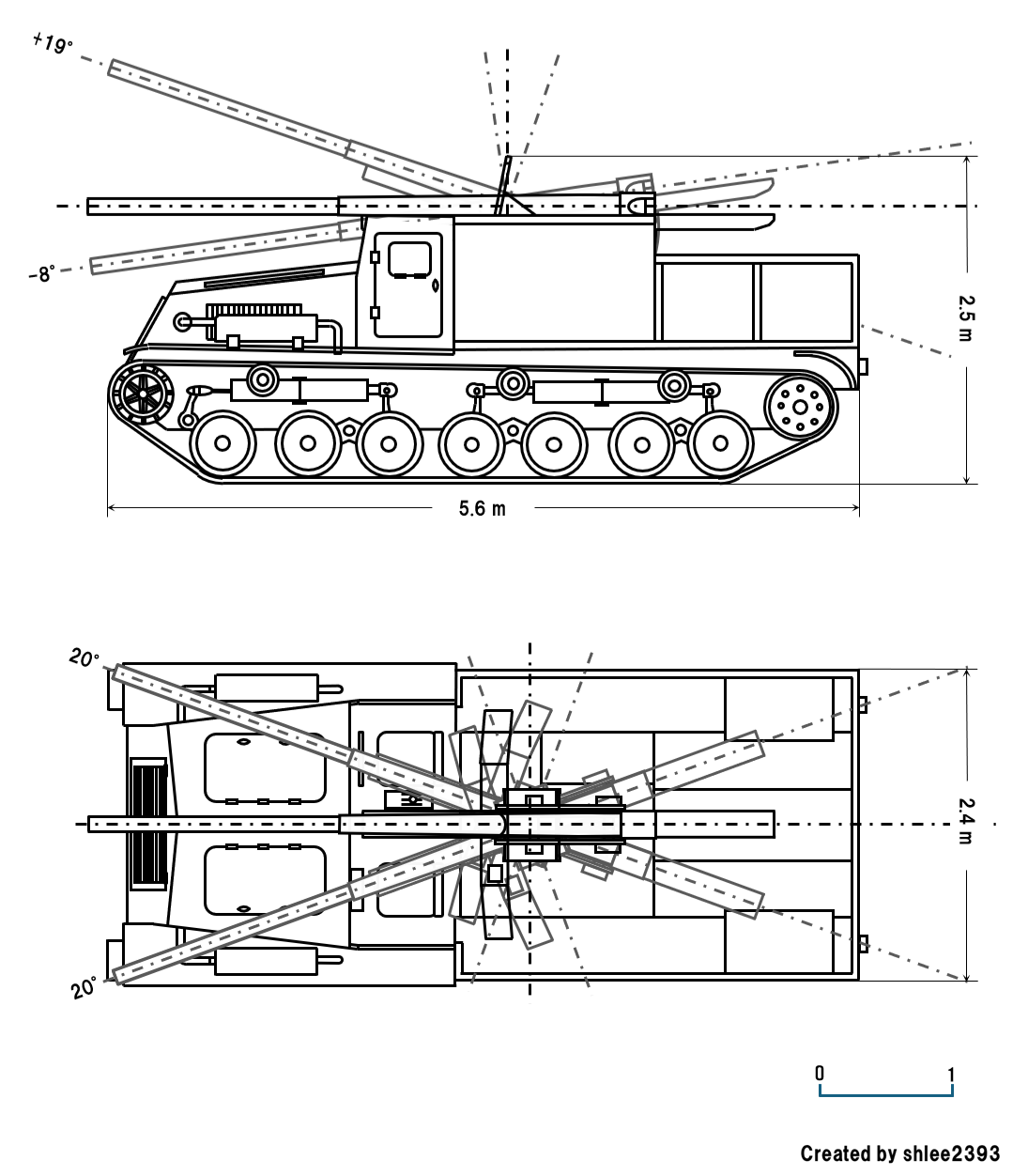 - Gun width (including gun shield): 1698 mm