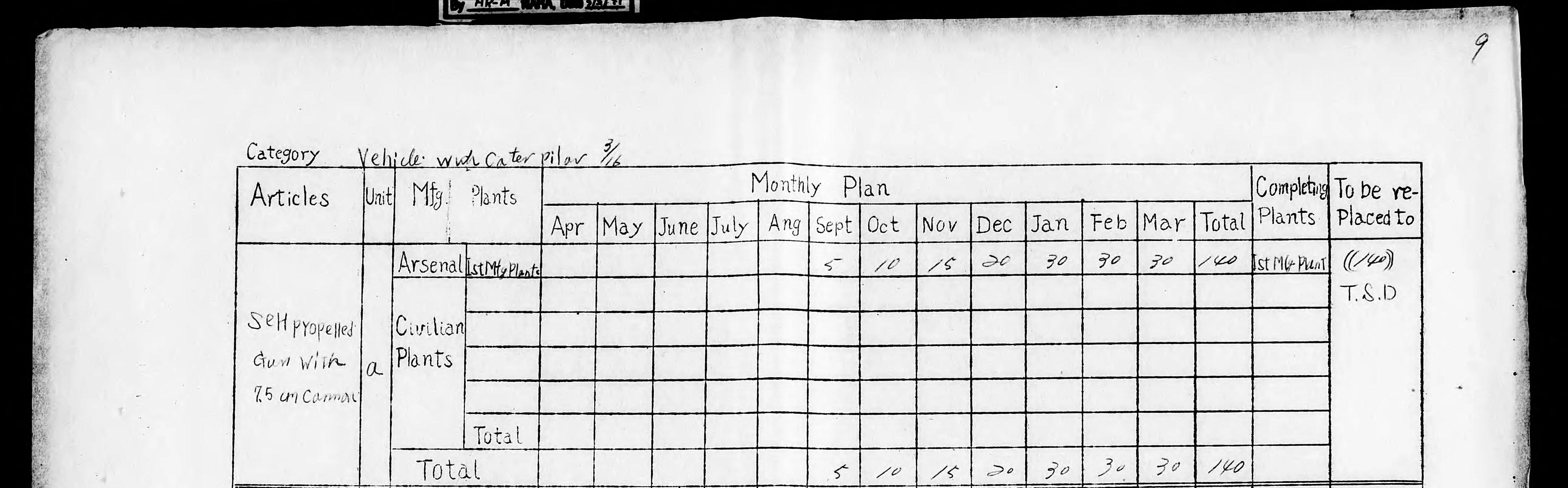 - 陸軍兵器行政本部, 昭和20年度整備計画附表, 1945年2月. (Ref. C13120840600)