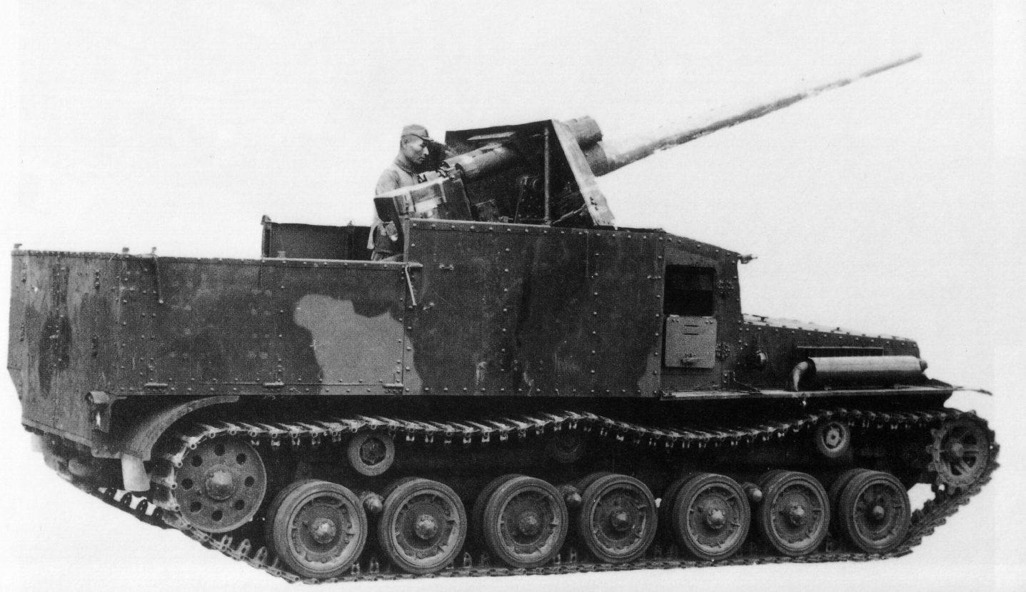 However, research did not actually begin until February 1943, a year later. As the gun was to be self-propelled, responsibilities were divided between the First Research Institute, which handled the gun, and the Fourth Research Institute, which worked on the vehicle. The gun was assigned the research code 「11砲 (Gun)」, while the vehicle was designated 「21牽 (Tow)」. Development of the vehicle began one month later, in March 1943, with both research programmes scheduled for completion by March 1945.