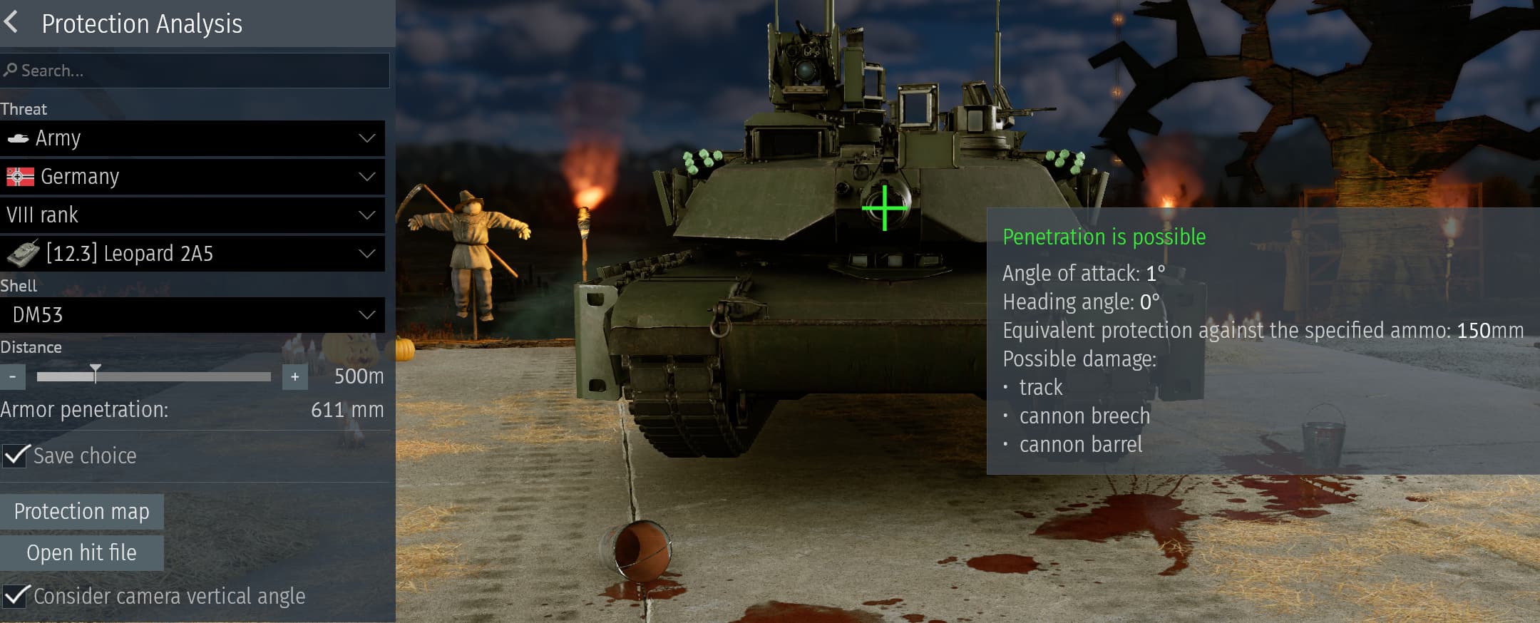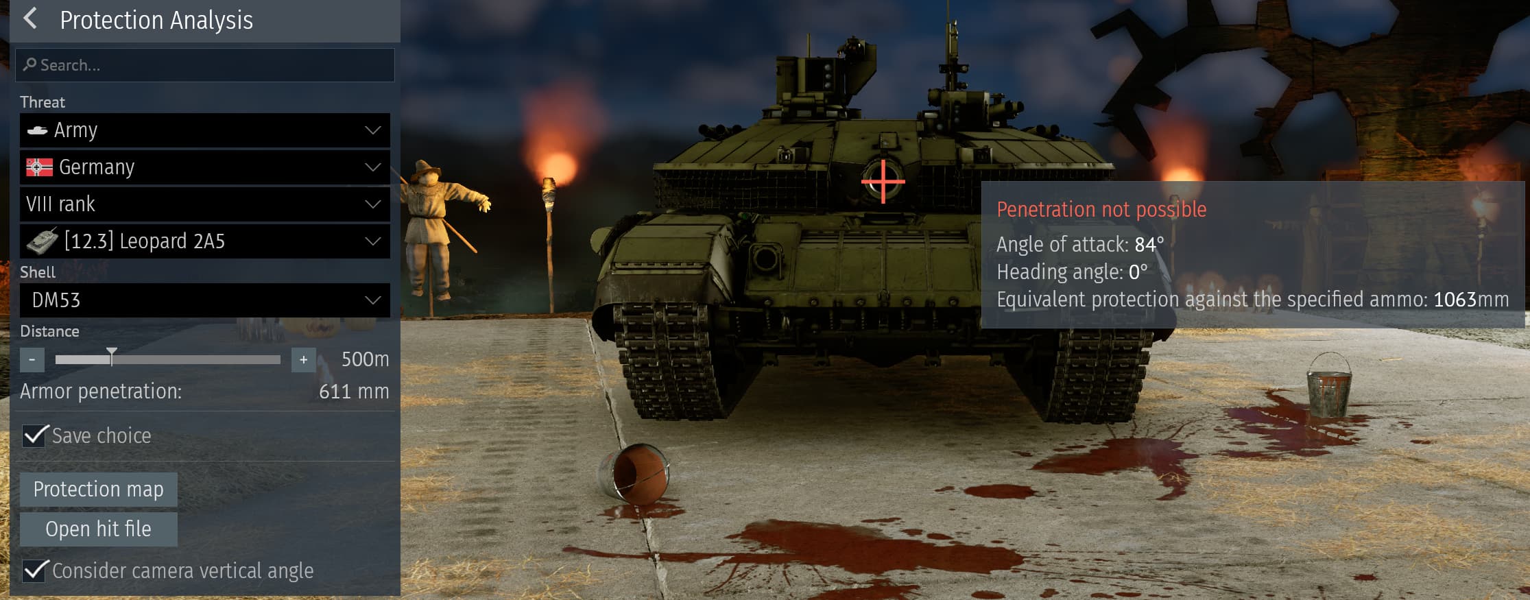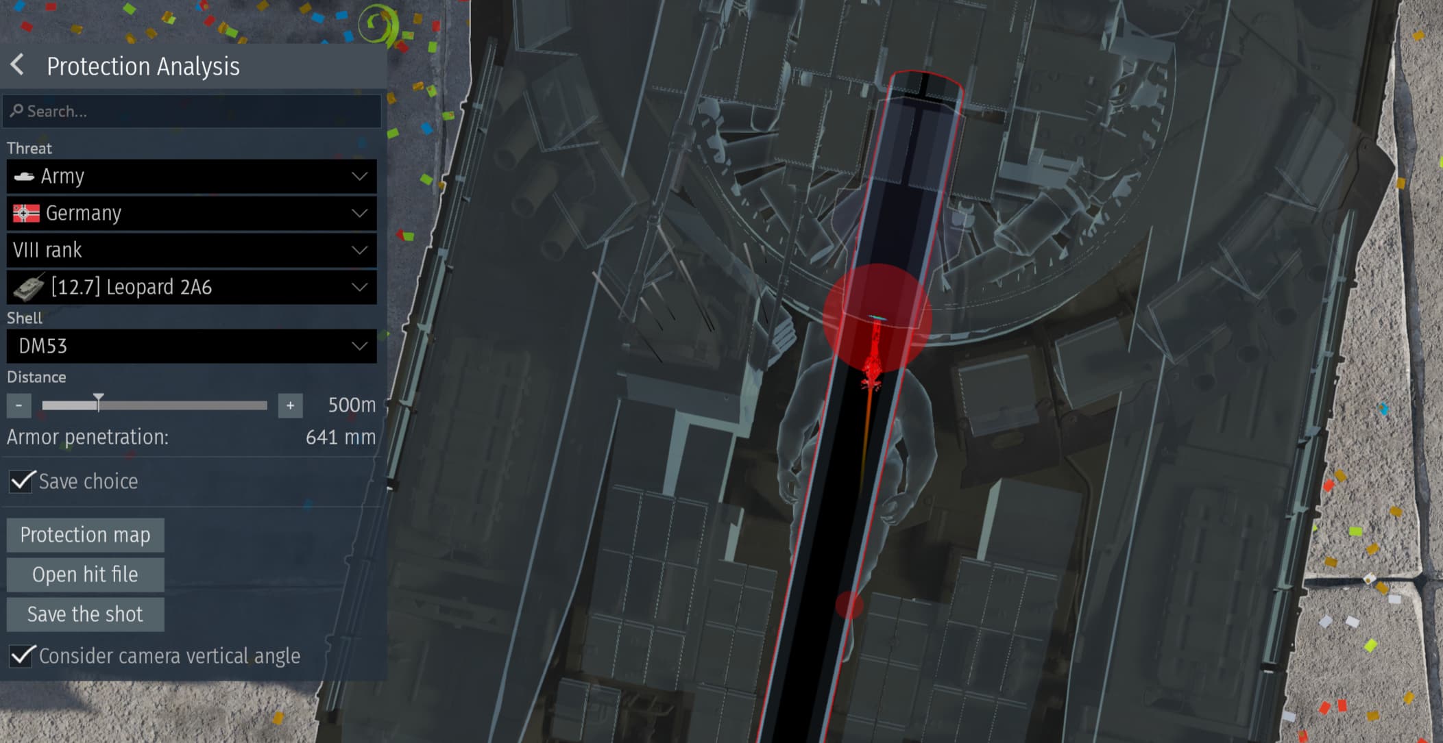Leopard 2a6 (Birds-eye after getting shot at 0°):