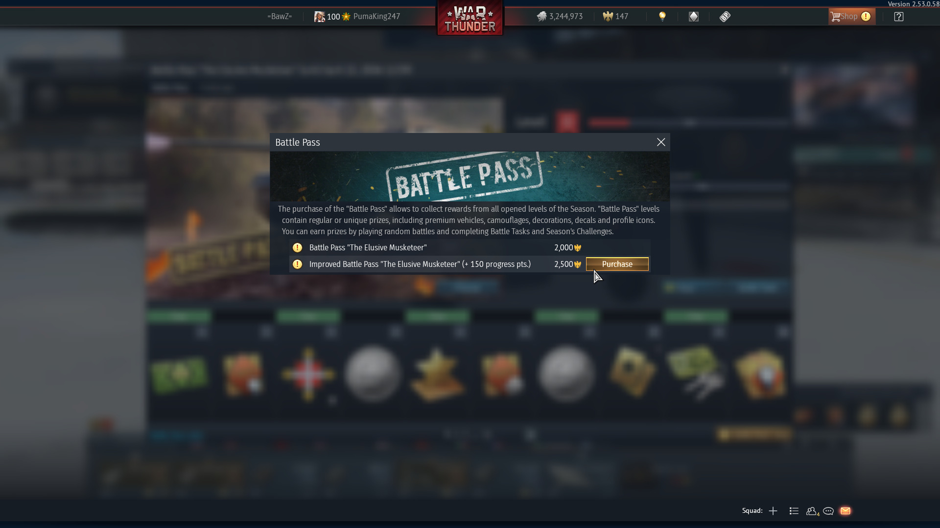 During the first four weeks of the season you can purchase 15 levels (but not more than 150 progress points). The levels purchased as part of the improved Battle Pass or the purchase of separate levels will be taken into account. The opportunity to purchase the remaining levels of the Battle Pass will be opened from the 29th day of the season.