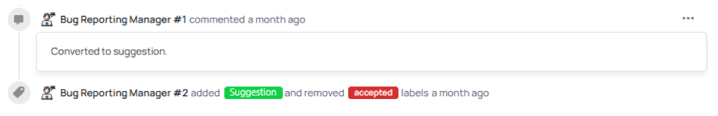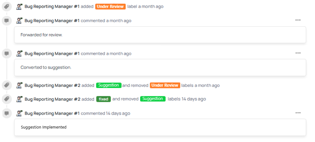 This Label does not change when a report is actually “Accepted” after being Reviewed, which can lead to confusion and a lack of Clarity between if a Report is pending review to see if it is valid, and to see if the Developers recognise the issue and is on their list of things to do
