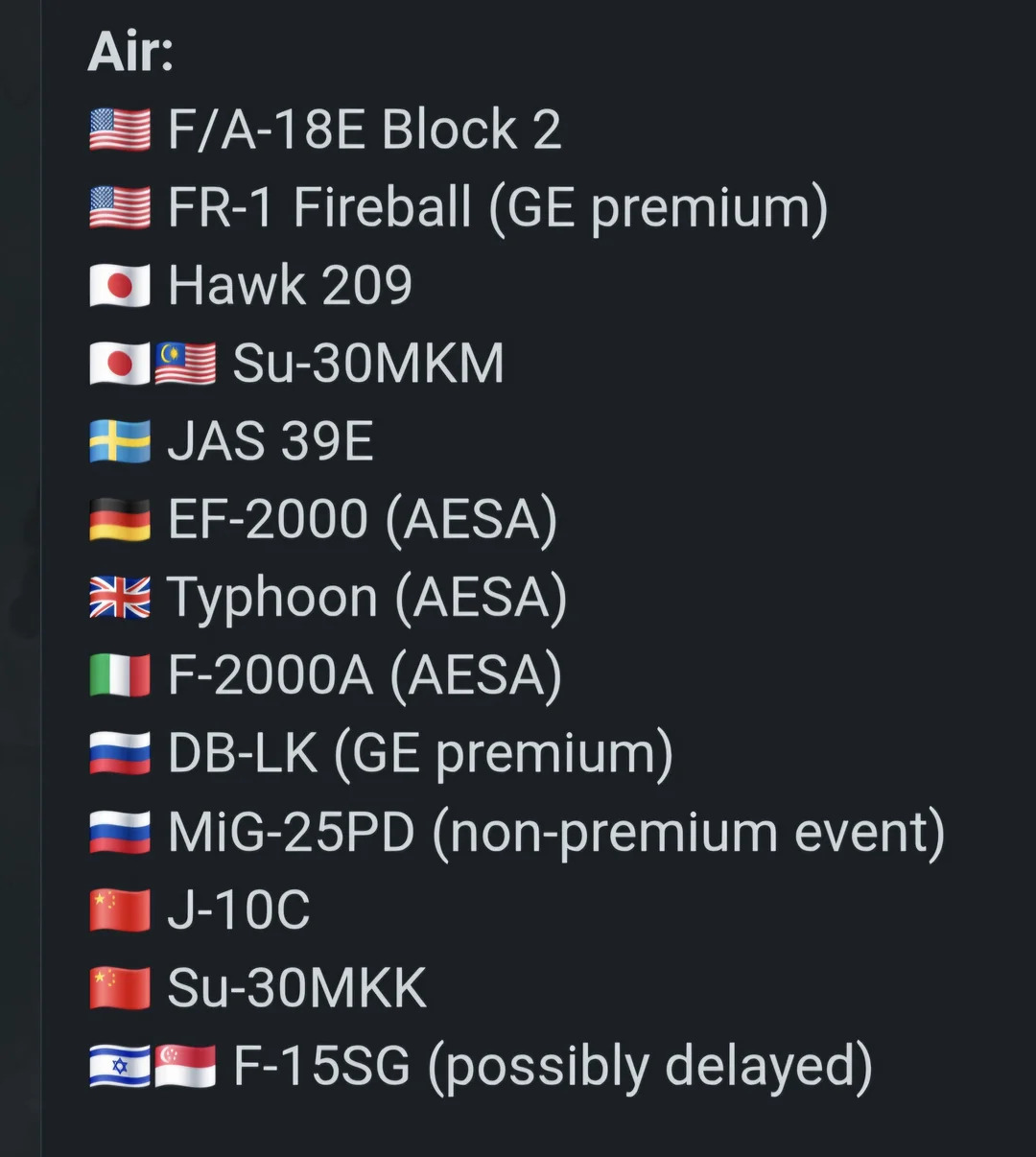 Highlight the Chu-SAM and whatever other SAMs they are adding, show a couple ships/boats and the rest of the trailer is gonna be a plane montage like always