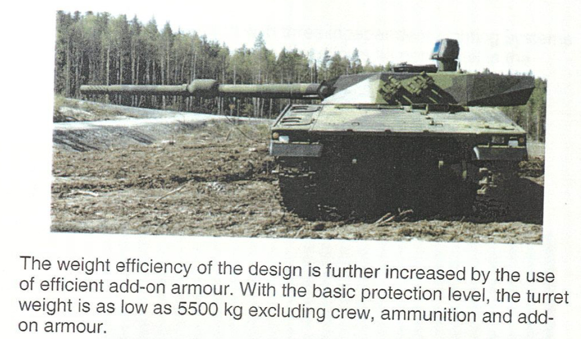 Just fyi, the entire “early” (1998-2000) turret has a maximum weight of 7.44t w/ applique armour, ammunition and crew - and a base weight of 5.5t with basic armour package (not including crew & ammo-weight)
