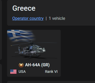 There is one Greek vehicle in game and its a helicopter.