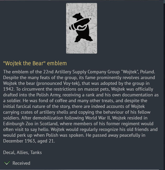 Also I’d go crazy if we got animal pictures like Unsinkable Sam, Wojtek or Bamse