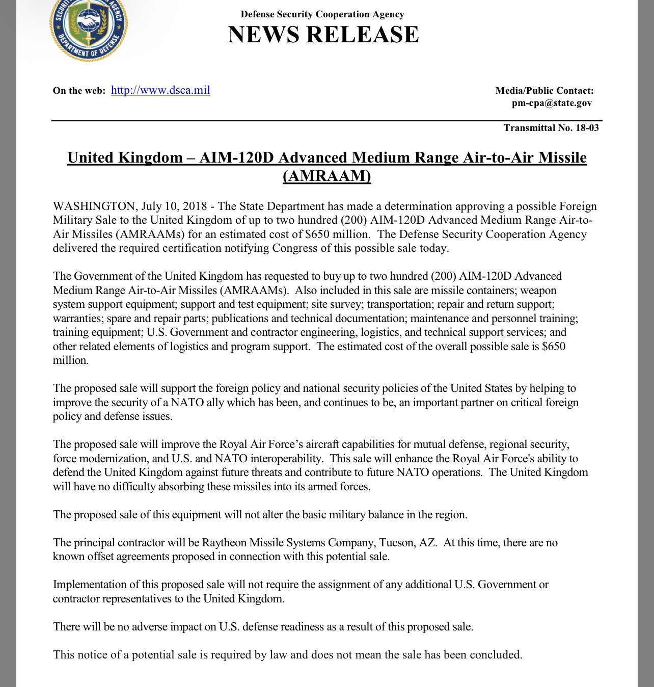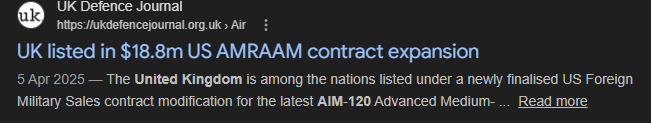 UK listed in $18.8m US AMRAAM contract expansion. Maybe within the next few months, depending on… current situations