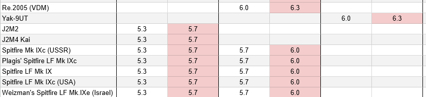 Hey Smin, were some planes supposed to be moved in realistic ground battles when they only been marked for change in air realistic battles? For example Spitfire LF Mk9 and Re.2005 (VDM)