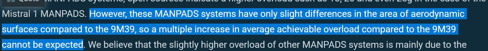 So for the Manpads you adjusted their performance down compared to the 9m39, even though official manufacteurer brochures say they are more capable? With just the way a missile looks from the outside?
