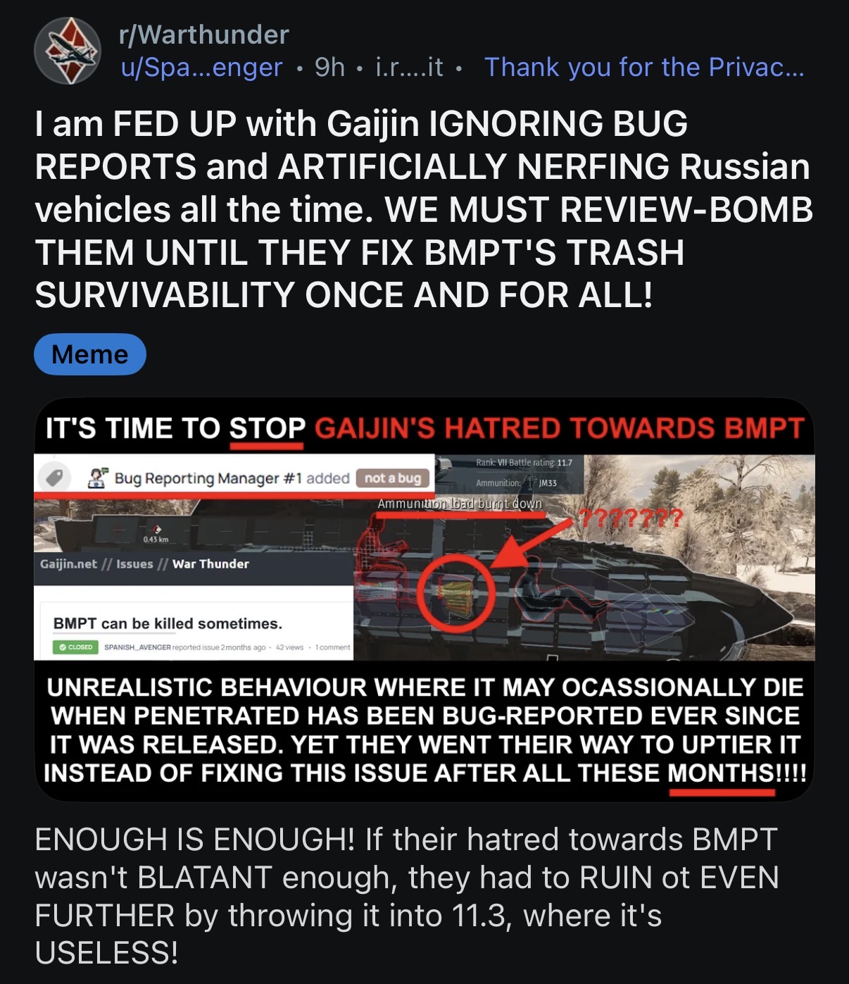 On Reddit, I even made one of my signature old “bug report rage posts” (cranked up to 200%) and… some people unironically fell for it lol