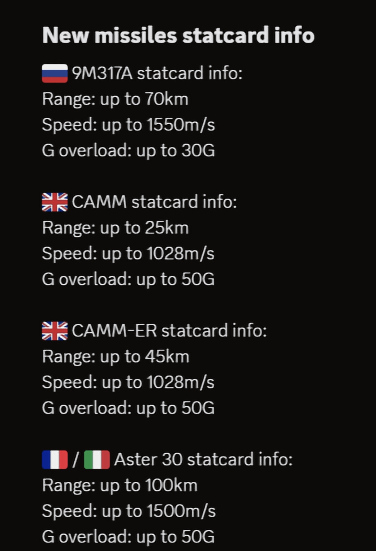 You are aware of the fact that all existing SPAAs in-game top out at about 45km right? You do play the game, correct? So unless these stat cards are just info and the missiles will only go about 45km as well, then anything more than that meets the definition of “unbalanced”. The Aster is getting you the moment you spawn.