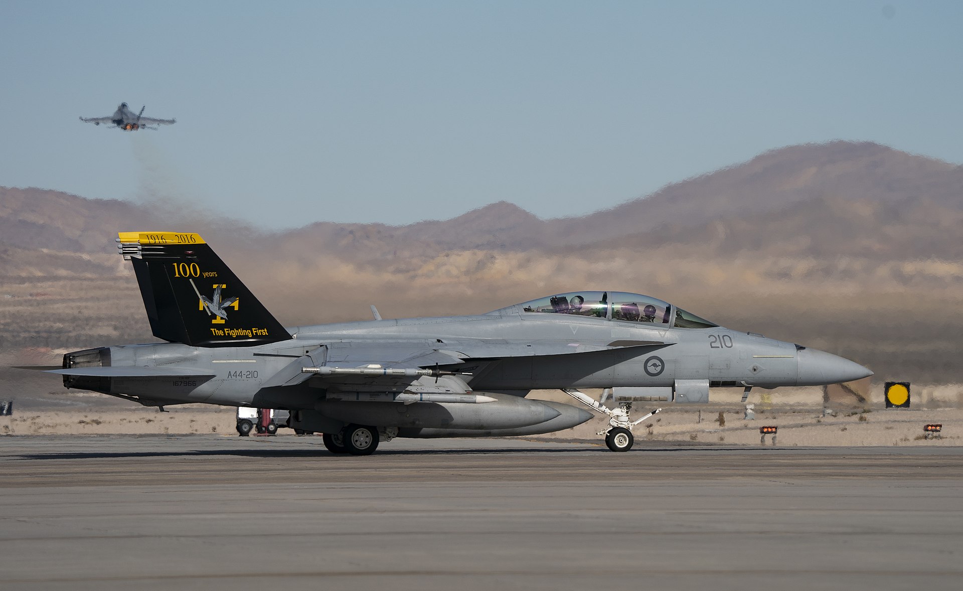 1 Squadron is the squadron that operates F/A-18F, and they just painted the tail on A44-210 black and yellow for their 100th