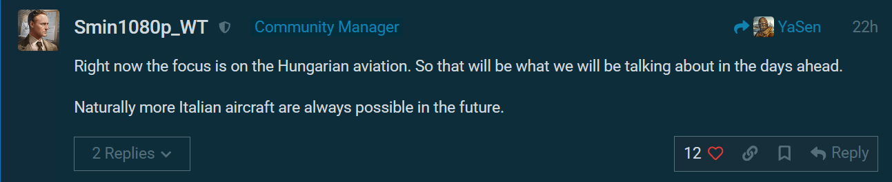 Gripen E in trailer (literally only added 2 days before dev closed lmao) just saying I think an all around balanced trailer is just a false statement. It’s never balanced as it’s always biased towards one group even if someone is getting something super important it would be like adding the F22 as the first 5th gen and ignoring the US entirely for the trailer.