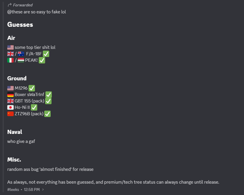 This is honestly the biggest deterrent for making suggestions. You can spend months (or years) making a suggestion. Then your suggestion can take months (or years) to get accepted. Then it can take months (or more likely, years) for your addition to actually get added to the game. Then it can take months (or years) for you to report every bug/missing feature that will inevitably end up affecting the vehicle (because Gaijin quality control is…interesting), despite providing specifications for the vehicle, and sources to confirm these specifications, which should have already been approved of during the process of accepting the suggestion.